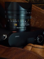 I’d be remiss if I failed to mention the Leica packaging. First you open a plain grey box that is perfectly filled with a black box. This black box opens a bit like a clam shell and the four sides literally fall away to reveal the heavy duty, “real” Leica” box. Inside of that is a small box with the camera inside, and below that are a couple of cardboard drawers that pull out for access to the documentation and accessories. Oh, and of course the accessories all come in their own little black bags with draw strings. Of all the “unboxing videos” I’ve witnessed on various websites, this is the one that really deserves it. 🙂