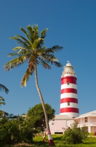 The Hope Town Lighthouse is located on Elbow Cay near the island of Abaco in The Bahamas.