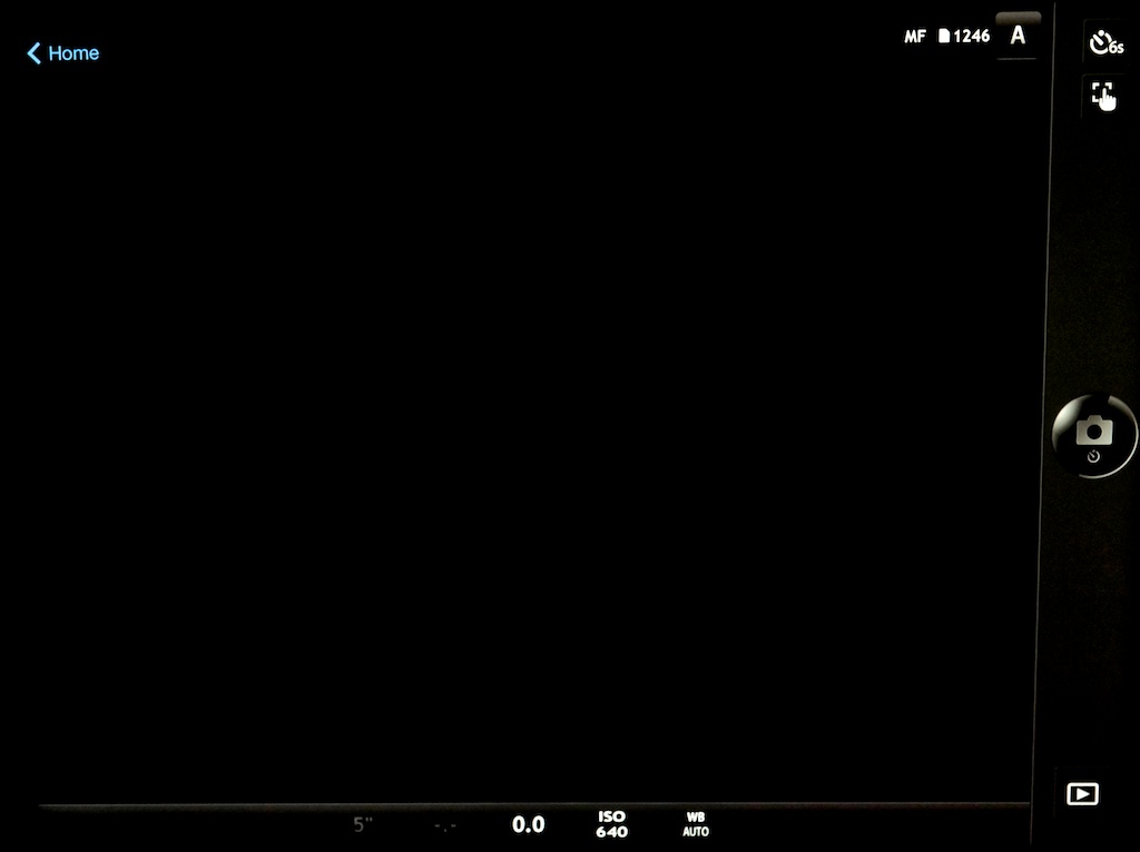 Now that you’re “smart” device is connected to the camera’s Wi-Fi network (the camera generates its own network so you can do this anywhere – no computer network needed), you merely decide what to do. For me, I will most often use Wi-Fi to remotely take photos with the camera by using my iPhone. It’s really a nice setup in that you can use the on-screen shutter button on your phone, or you can use the touch screen to select the focus point (and focus) or select the focus point and shoot all in one touch. Lots of flexibility and control, there. 🙂