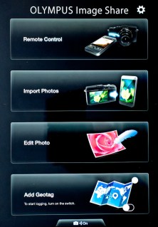 Now, back to O.I. Share and select whether you want to use the Remote Control function, Import Photos, Edit Photo, or Add Geotag.