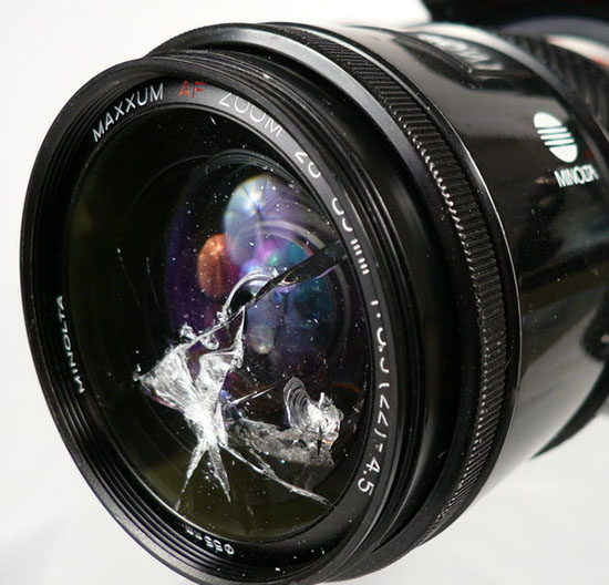 Kurt took a cheap lens that was optically fine and subjected it to a series of tests involving making the front element dirty, smudged, scratched, and eventually destroyed. At each step of the process, he took a photo and looked for how the defects impacted the image. It’s actually quite surprising how much he had to do before he could find any evidence of trouble in the image. And it’s amazing how a destroyed and even missing front element could still yield usable, recognizable photos! Check out the photo below.