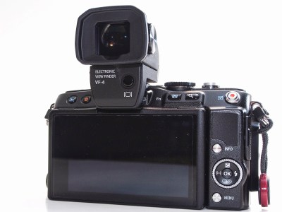 As for the VF-4, it is very nice!  The higher resolution is a bonus and the larger view is wonderful.  I don’t really like the look of the camera with the VF-4 sitting on top, but I much prefer a viewfinder for composing shots instead of using the rear screen, so I’ll make the sacrifice.  It looks a bit fragile and vulnerable up there, but it actually attaches very securely, by plugging into the accessory port and also the hot shoe.  Another nice feature is that it will rotate up 90 degrees, which can be a big help when composing shots with the camera close to the ground.